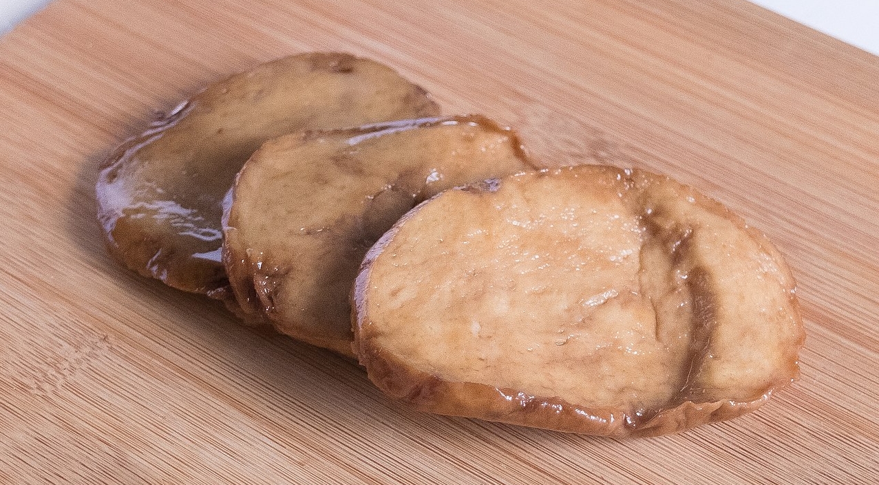 Tranches de seitan cuisiné comme un rôti (Photo nclm via Wikimedia Commons). |