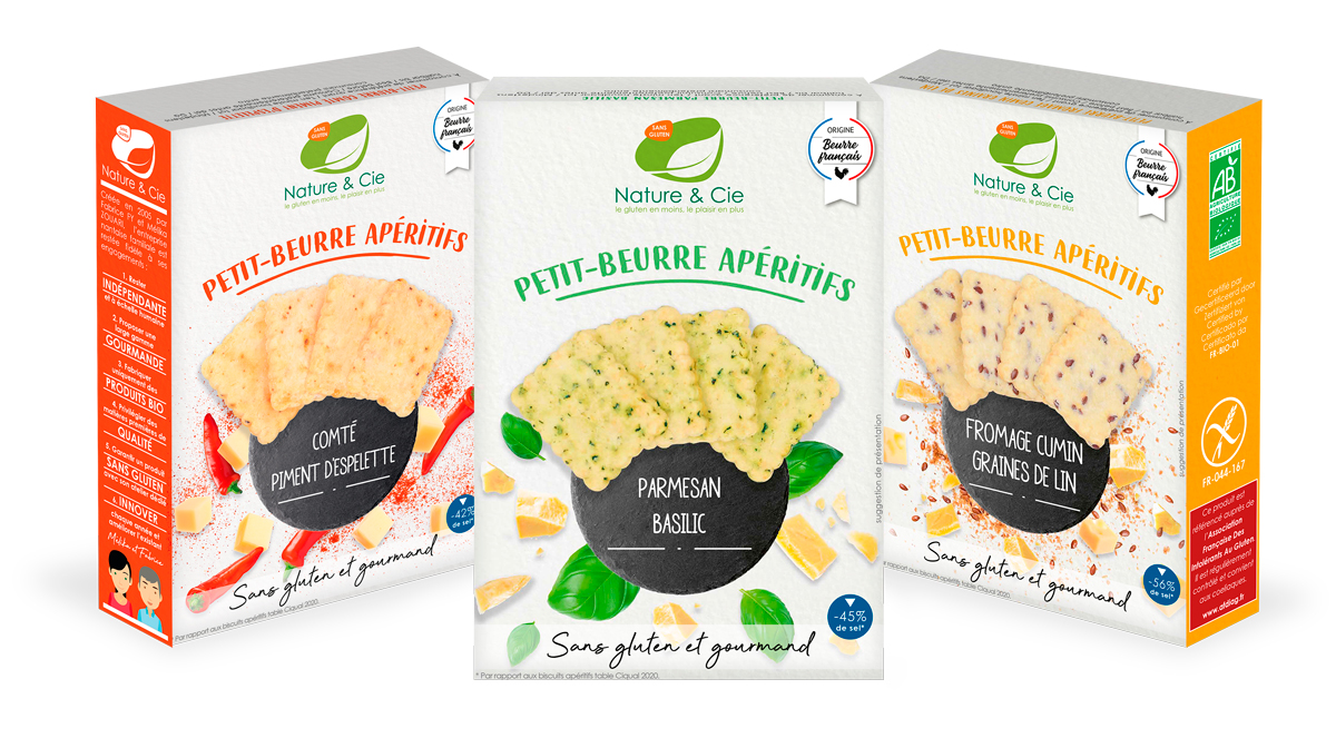 Fidèle à ses engagements, Nature & Cie a mis au point un produit à la fois bio et sans et gourmand ! De plus, la gamme affiche un taux de en sel réduit*. Ces biscuits apéritifs, à la forme originale de Petit-beurre, ont donc tout pour plaire. |