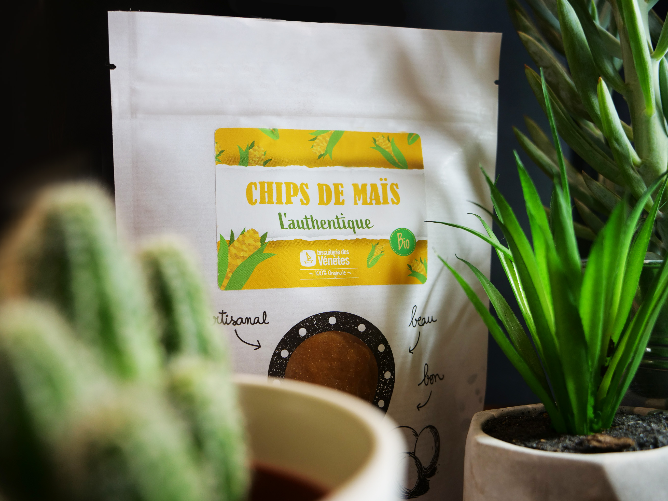 La Biscuiterie des Vénètes élargit sa gamme apéritive en nous proposant aujourd’hui une nouvelle recette de chips. Après la chips au sarrasin, elle nous offre sa version de la chips au maïs déclinée en 3 saveurs : Authentique, Chili et Comté.