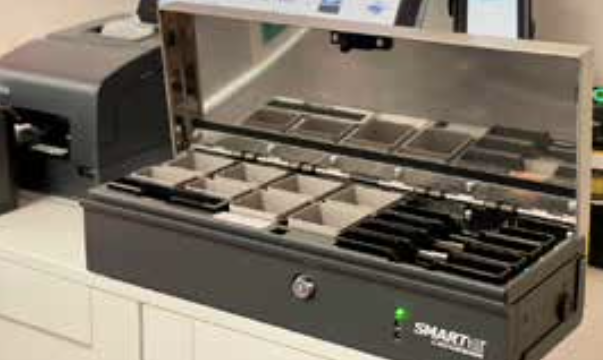 - Le tiroir-caisse intelligent SMARTtill dispose de 8 compartiments pièces et 5 compartiments billets, tous dotés d’un système individuel de pesée ultra précis.