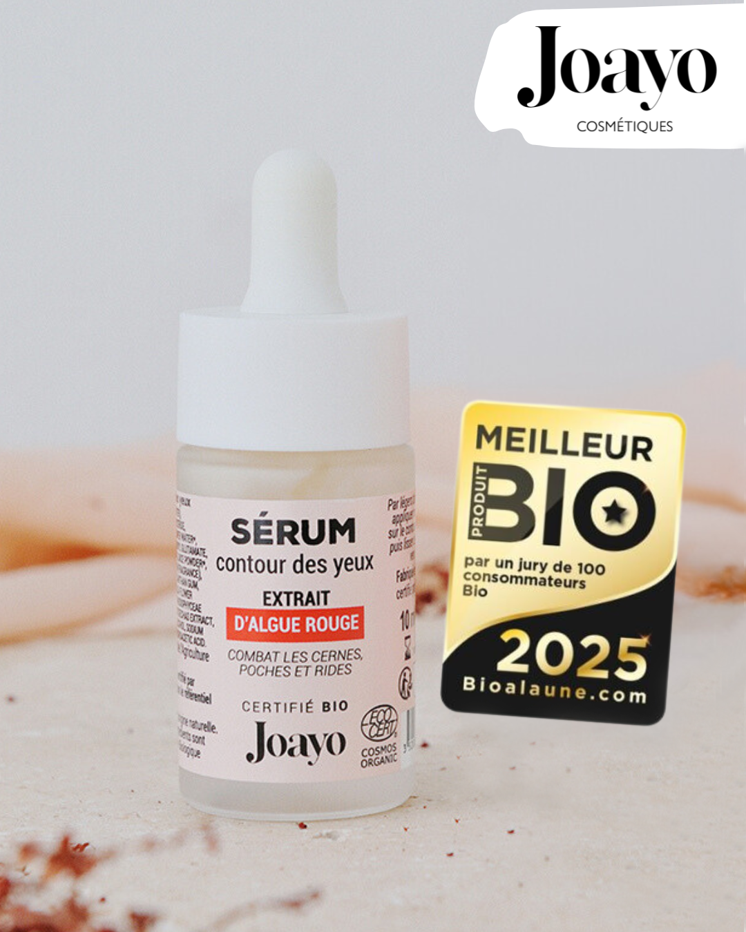 Certifié bio et fabriqué en France, ce sérum contour des yeux aide à combattre le vieillissement cutané grâce à son puissant actif issu de l’algue rouge Polysiphonia cultivée en Bretagne. Enrichi à l’aloé vera, à l’eau de Bleuet et à la rose de Provins, il réduit visiblement les cernes, poches et rides tout en décongestionnant les yeux fatigués.*