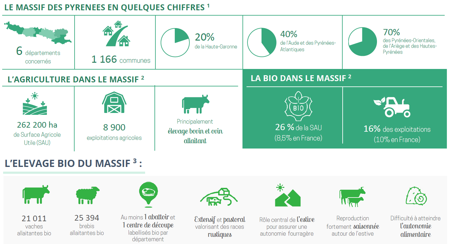 *Les Groupements d’Agriculture Biologique (GAB) et CIVAM Bio (Centres d'Initiatives pour Valoriser l'Agriculture et le Milieu rural) oeuvrent pour le développement d’une agriculture biologique territorialisée et équitable sur leur département. Ils se regroupent désormais au sein du réseau « Elevage Bio des Pyrénées » qui, en complément de leur fédération régionale Bio Occitanie, permettra d’amplifier leurs actions en valorisant les spécificités du Massif des Pyrénées.