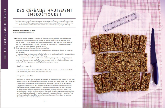 Dans cette édition enrichie par 10 recettes inédites, de nouvelles photos et une nouvelle mise en page, vous trouverez une introduction théorique à la déshydratation suivi d’une trentaine de recettes : • condiments, épices et poudres maison (condiments et épices, poudres colorantes…) ; • chips et crackers (chips de patate douce au colombo, pop-corn de chou-fleur, crackers de la forêt, minipizzas apéritives….) ; • cuirs de fruits (barquettes de mangue, rubans de kiwis qui piquent…) ; • biscuits et encas à base de céréales (barres multifruits aux grains de chia…).