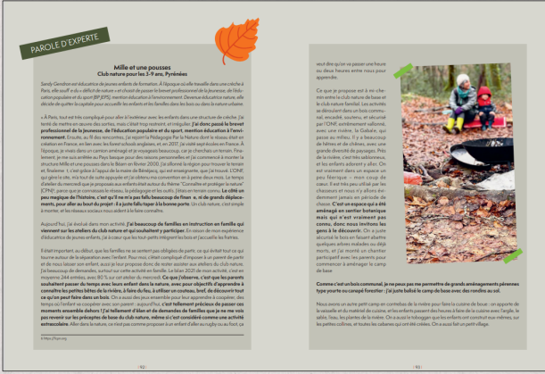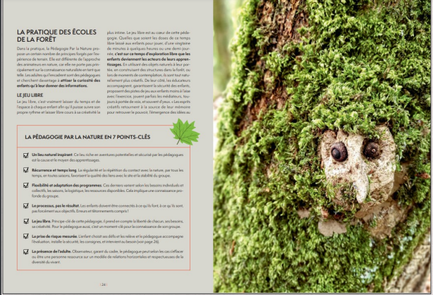 Entre pédagogie, principes éducatifs et cahier d’activités, ce livre écrit avec la coopération du Réseau de Pédagogie Par la Nature propose un panorama complet des différentes façons de faire « l’école en forêt ». Au sommaire de cet ouvrage richement illustré vous trouverez : • des explications sur l’intérêt de la Pédagogie Par la Nature pour se reconnecter à soi-même, aux autres et à la nature ; • des témoignages de parents et de pédagogues; • un cahier de plus de 20 activités ludiques et pédagogiques à proposer aux enfants dès leur plus jeune âge jusqu’à l’adolescence.