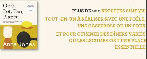 En complément les recettes Anna Jones propose deux chapitres consacrés au mode d’alimentation écoresponsable : comment ne pas gâcher de la nourriture ? Comment vivre avec moins de plastiques ? Quels ingrédients devraient se trouver dans nos assiettes ? Et bien sûr comment économiser de l’argent et de l’énergie.