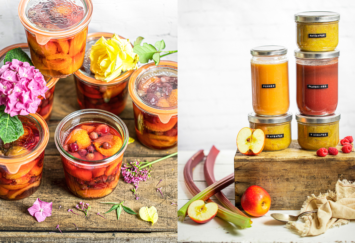 Conserves au vinaigre, conserves stérilisées, conserves à l’huile, conserves lactofermentées, confitures et sirops, boissons fermentées et alcoolisées, bocaux prêts-à-manger.