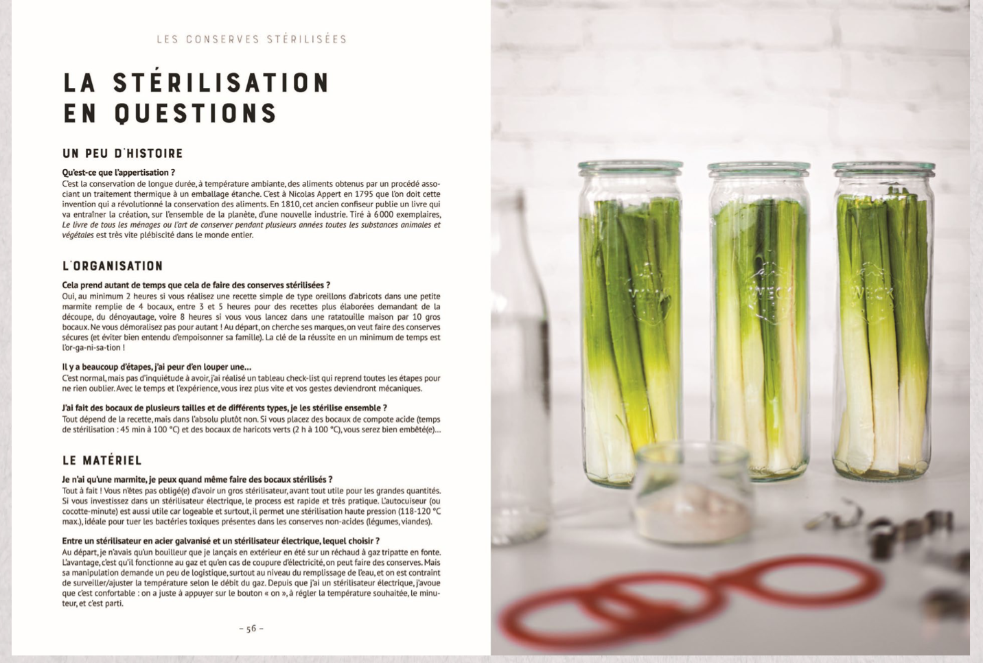 Si certaines recettes peuvent se réaliser en quelques minutes, d’autres demanderont organisation et logistique pour gagner du temps, mais aussi et surtout pour les réaliser de manière sécurisée. C’est la raison pour laquelle vous trouverez des pages informatives et scientifiques, afin que vous ayez toutes les cartes en main pour mettre en bocal vos petits plats.