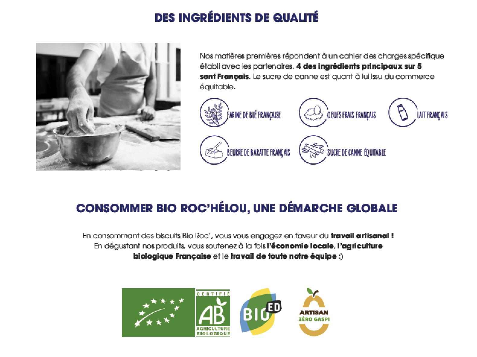 Bio Roc vous propose une large gamme de produits gourmands certifiés AB, à déguster à n’importe quel moment de la journée ! Galettes, palets, crêpes, madeleines, sablés et florentins… il y en a pour tous les goûts :)
