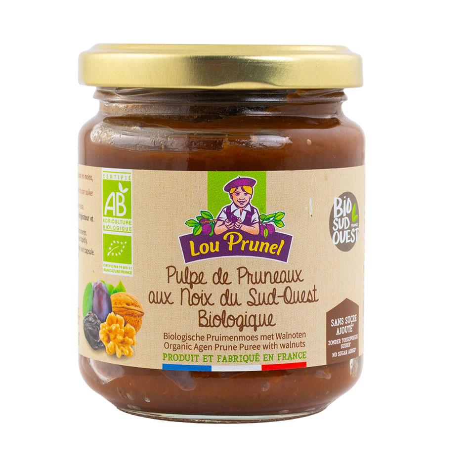 Cette pulpe gourmande associe deux produits emblématiques du Sud-Ouest, les pruneaux d’Agen et les noix, pour une préparation aux multiples usages. Sans sucres ajoutés, cette pulpe est riche en fibres, oméga 3, phosphore, magnésium, potassium, vitamine E, fer et zinc, offrant ainsi des bienfaits pour la santé.