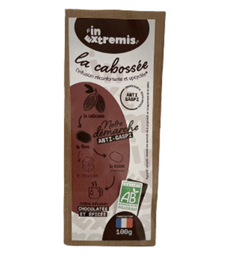 Cette infusion réconfortante et upcyclée aux notes chocolatées et épicées propose une expérience innovante et gourmande. Composée à 74% d’ingrédients revalorisés tels que les cosses de cacao et le marc de pommes, cette infusion peut être consommée seule ou en latte. Elle ne contient ni arômes ni additifs, offrant ainsi une boisson naturelle et écologique.