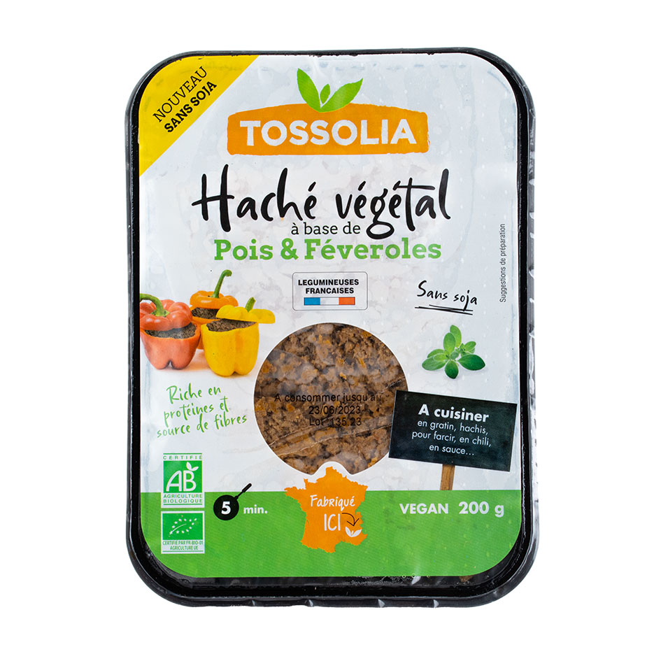 Ce haché végétal artisanal, élaboré à partir de pois et de féveroles français, offre une texture et un goût bluffants, tout en étant riche en protéines et en fibres. Sans soja, ce produit permet de végétaliser facilement les recettes à base de viande hachée et convient parfaitement aux personnes souhaitant réduire leur consommation de viande.
