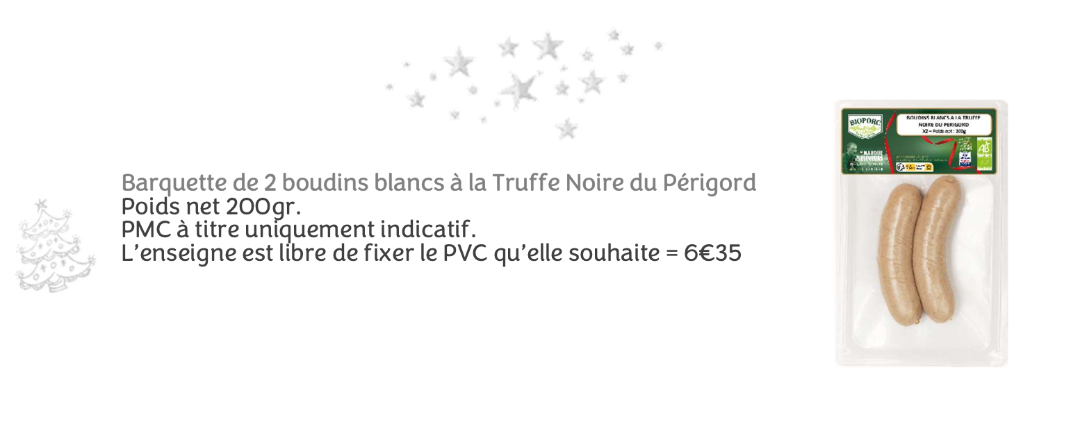 Comme toutes les occasions sont bonnes pour inviter le boudin blanc à son menu, et en particulier pendant les fêtes, la marque spécialiste de charcuterie Bio, Bioporc, élargit sa gamme en circuits spécialisés et présente une nouvelle référence élaborée dans la tradition charcutière.