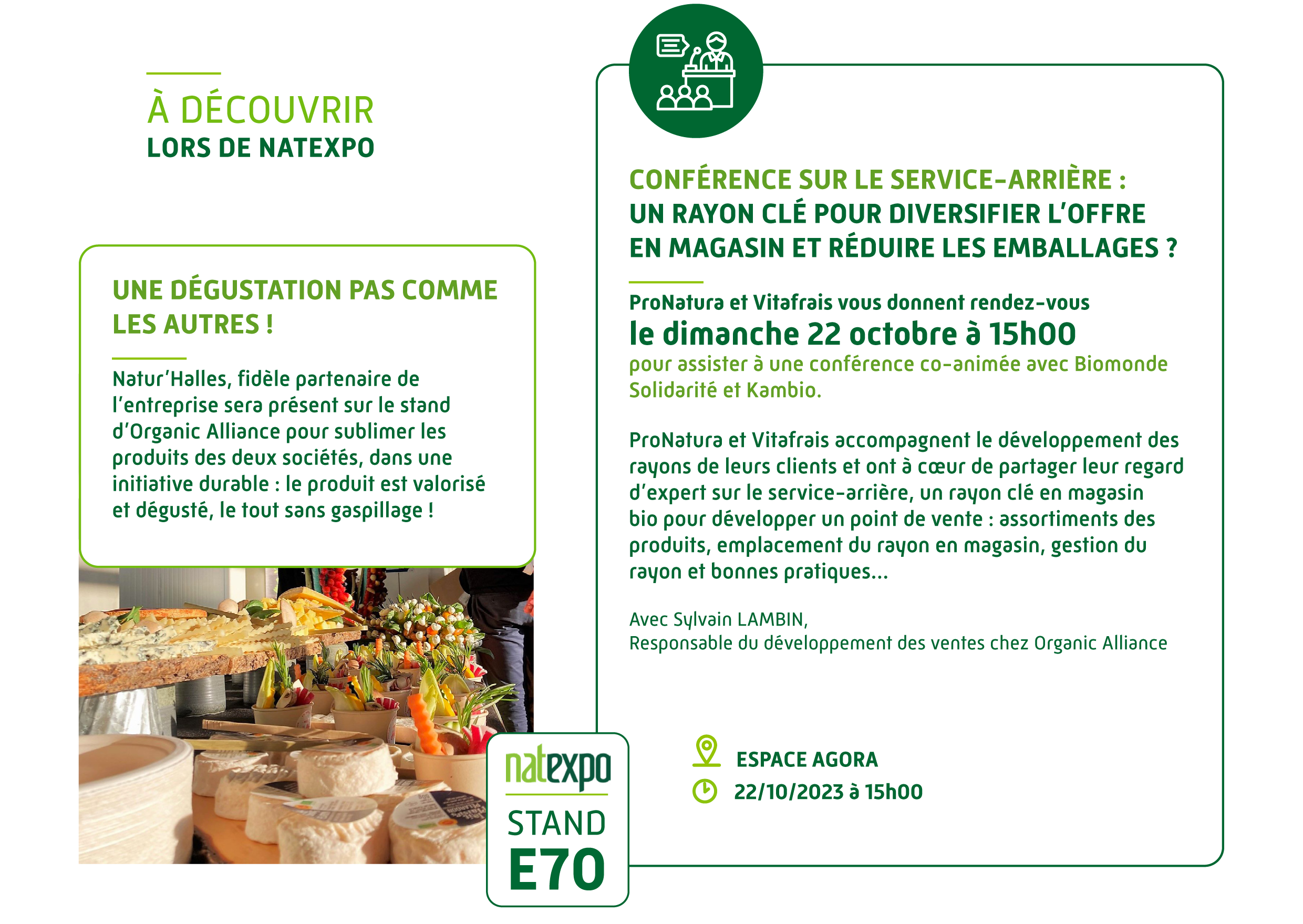 ProNatura et Vitafrais, sociétés du groupe Organic Alliance, développent une expertise unique dans le secteur de la bio grâce à leurs identités fortes et leur connaissance du marché : ProNatura, spécialiste des fruits et légumes bio, fruits secs bio et Vitafrais, spécialiste des produits frais bio et ultra-frais bio. À l’occasion de Natexpo, le salon international des produits biologiques du 22 au 24 octobre qui dessine la bio de demain, Organic Alliance affiche des actions fortes pour relancer et soutenir le marché, auprès de ses clients, tout en défendant le pouvoir d’achat des consommateurs.