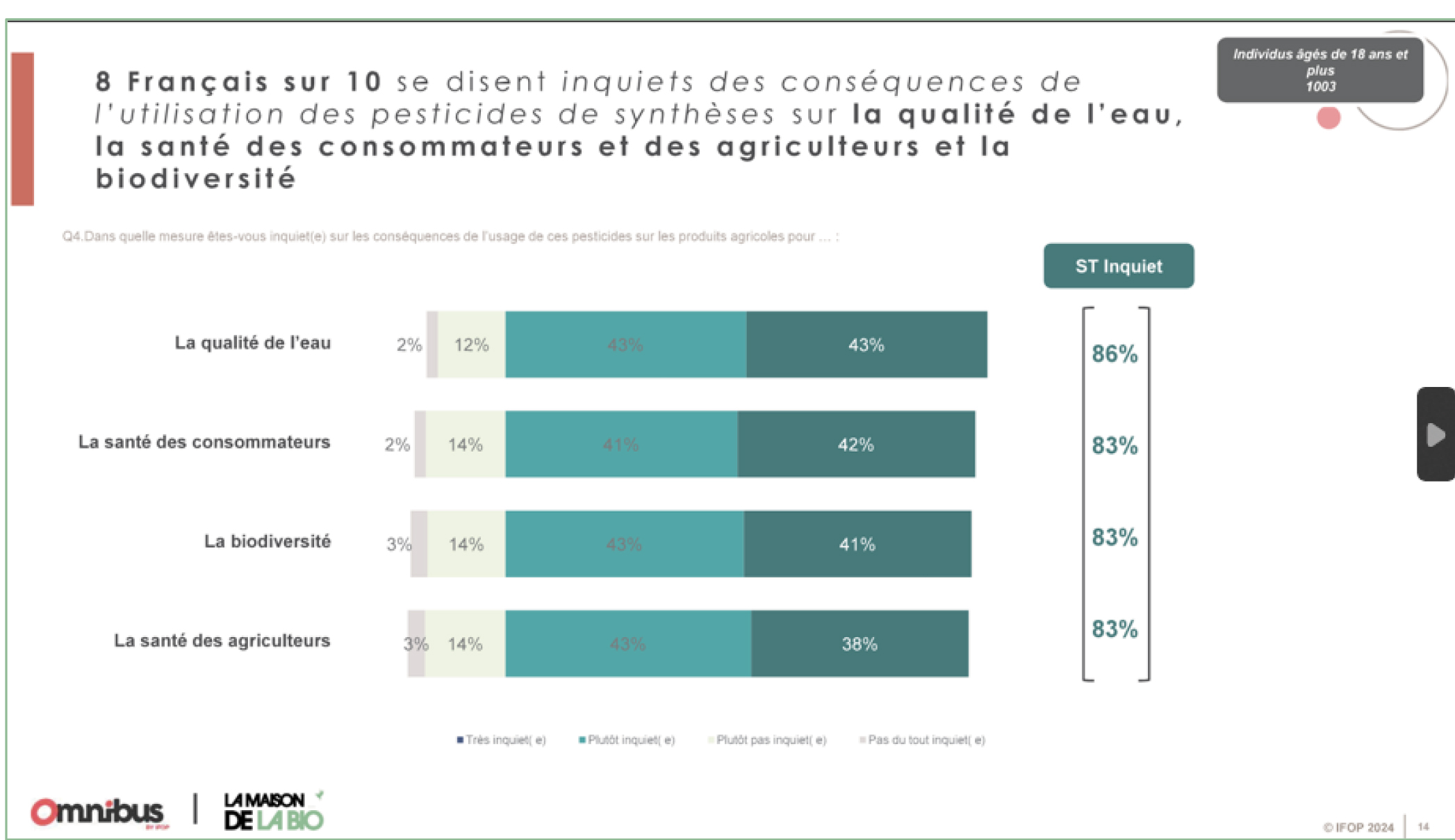 “Plus de 80% des français sont inquiets des conséquences de l’utilisation des pesticides sur l’environnement et sur la santé et ils ne sont pas entendus par nos dirigeants. Il y a déjà eu trop de recul des politiques européennes sur les sujets qui nous préoccupent, et les perspectives ne sont pas réjouissantes. Nous voulons affirmer que les entreprises et les acteurs de la Bio répondent aux inquiétudes des Français.” explique Didier Perréol, Président de la Maison de la Bio.
