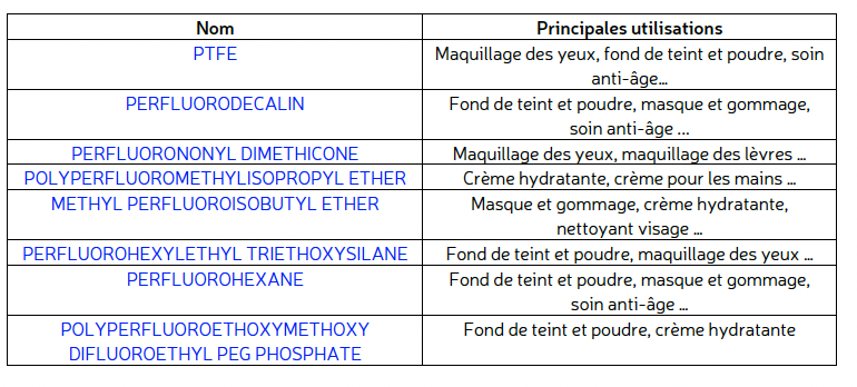 En lisant la liste INSCI ! Voici les principaux PFAS que vous pouvez retrouver dans les cosmétiques conventionnelles :