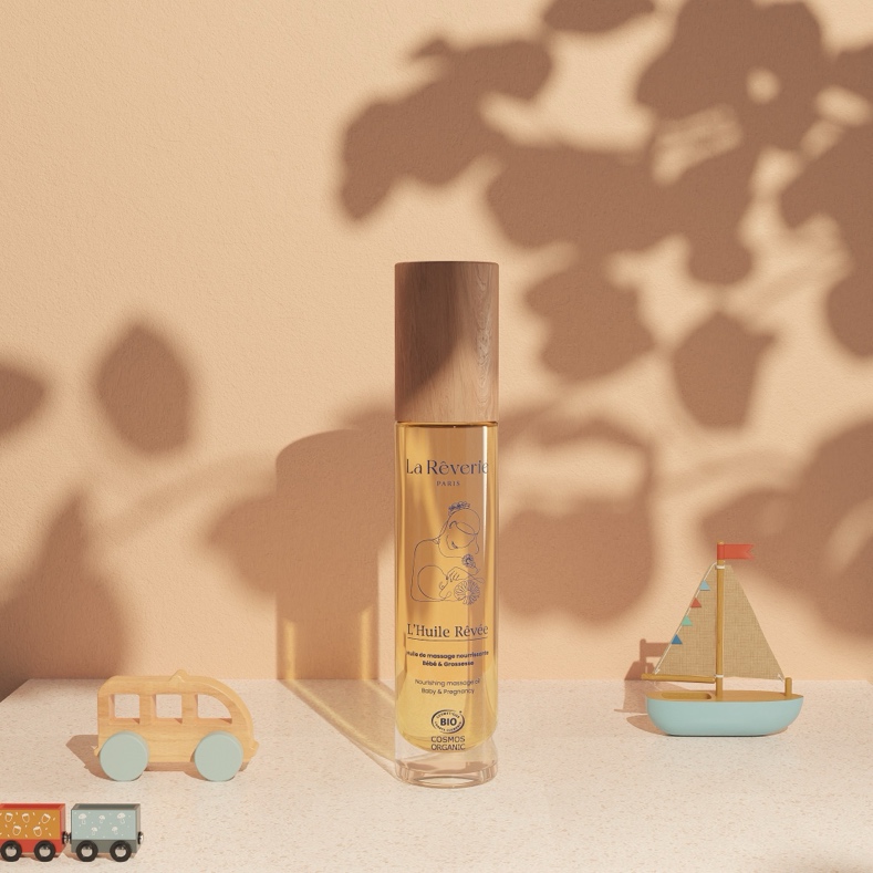 L’Huile Rêvée, spécialement conçue pour les bébés, les femmes enceintes et les peaux atopiques, apaise, nourrit et procure un confort durable à la peau. Elle associe des actifs uniques : les algues brunes bretonnes, issues de l’agriculture régénératrice, pour renforcer la barrière cutanée, prévenir la déshydratation et apporter un confort optimal à la peau ; le calendula d’Auvergne-Rhône-Alpes, pour apaiser en douceur les peaux sensibles ; l’huile de prune de Gascogne, pour nourrir intensément et prévenir la sécheresse cutanée. Sa formule contient 100% d’ingrédients d’origine naturelle et 98% d’ingrédients issus de l’agriculture biologique.