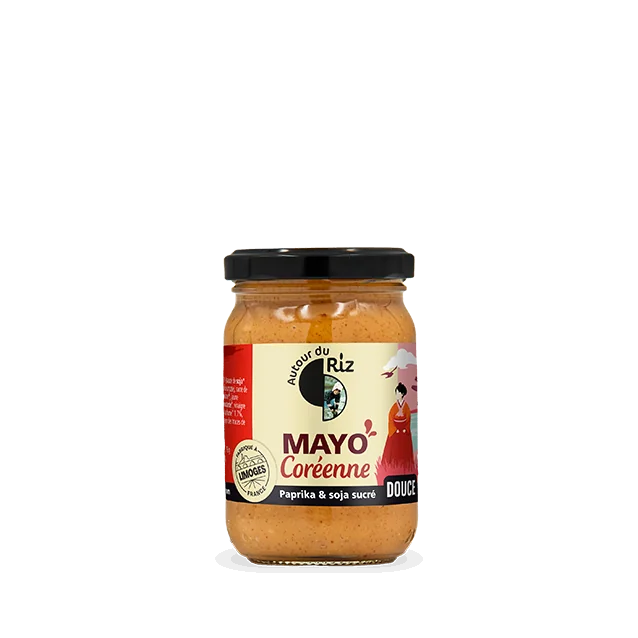 Mayo Coréenne bio 180 g AUTOUR DU RIZ Une sauce qui se distingue par une recette inédite alliant paprika et sauce soja sucrée, à la saveur originale et gourmande. Polyvalente, elle accompagne aussi bien les grillades que les crudités, les sandwichs ou encore les plats du quotidien. Entièrement fabriquée en France, elle est élaborée avec des graines de moutarde françaises, gage de qualité et de proximité.