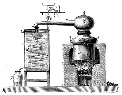 La distillation ne permet pas d’extraire l’ensemble des principes actifs contenus dans une plante : une évidence connue depuis des siècles (gravure ancienne).